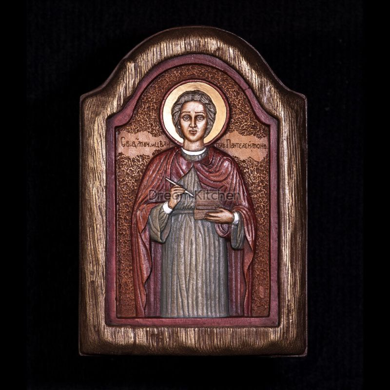Ръчно рисувана икона на Свети Пантелеймон. Върху изчистена дървена основа. Размер 19/14 см.