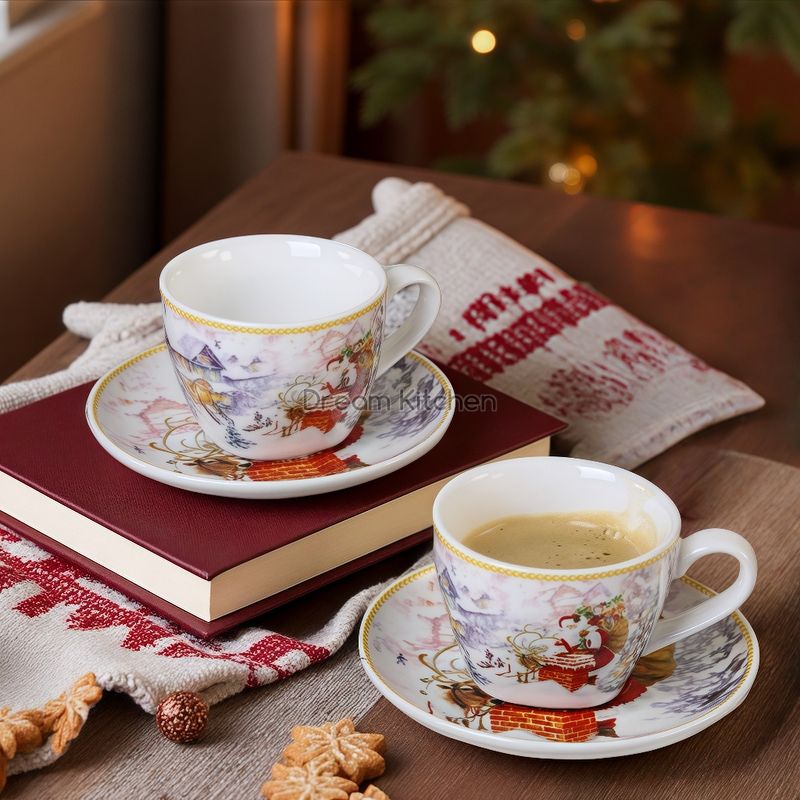 Комплект две коледни чаши от серията "Дядо Коледа" с ефектна коледна декорация. Предлагат се в цветна кутия.