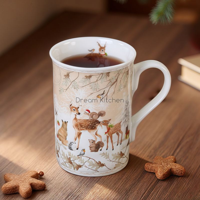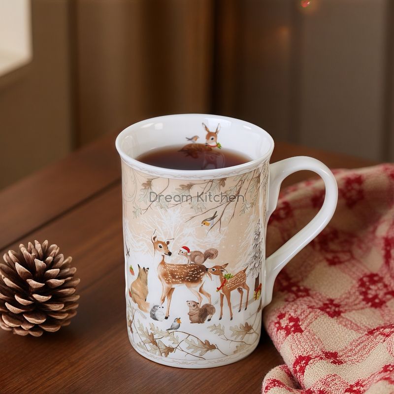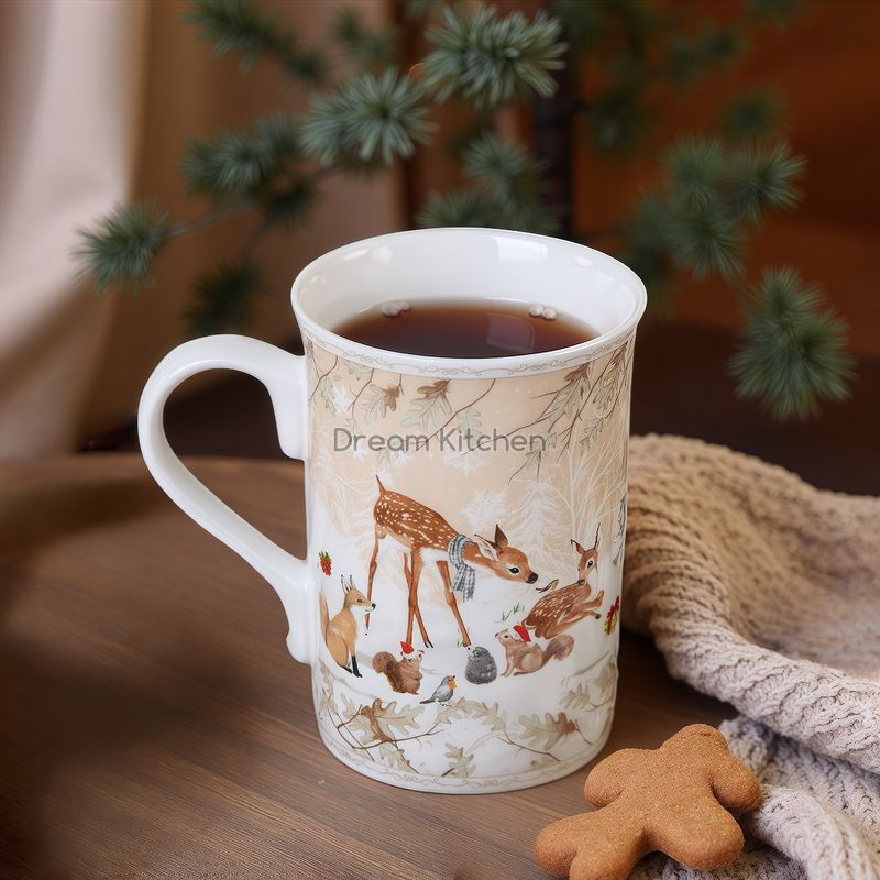 Коледна чаша от серията "Горска приказка" с ефектна коледна декорация. Предлага се в цветна кутия.