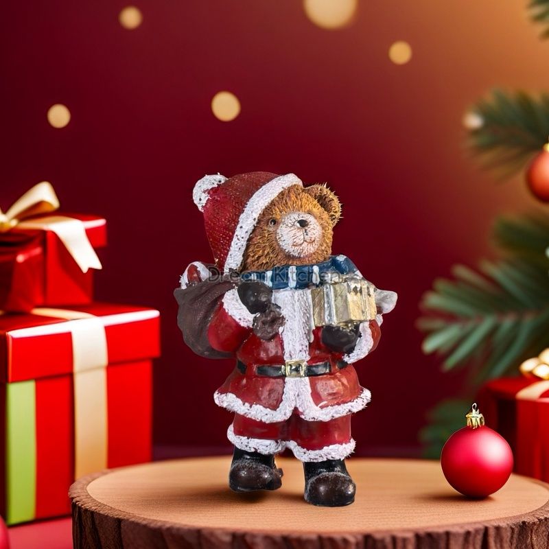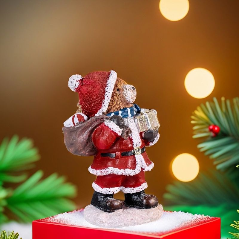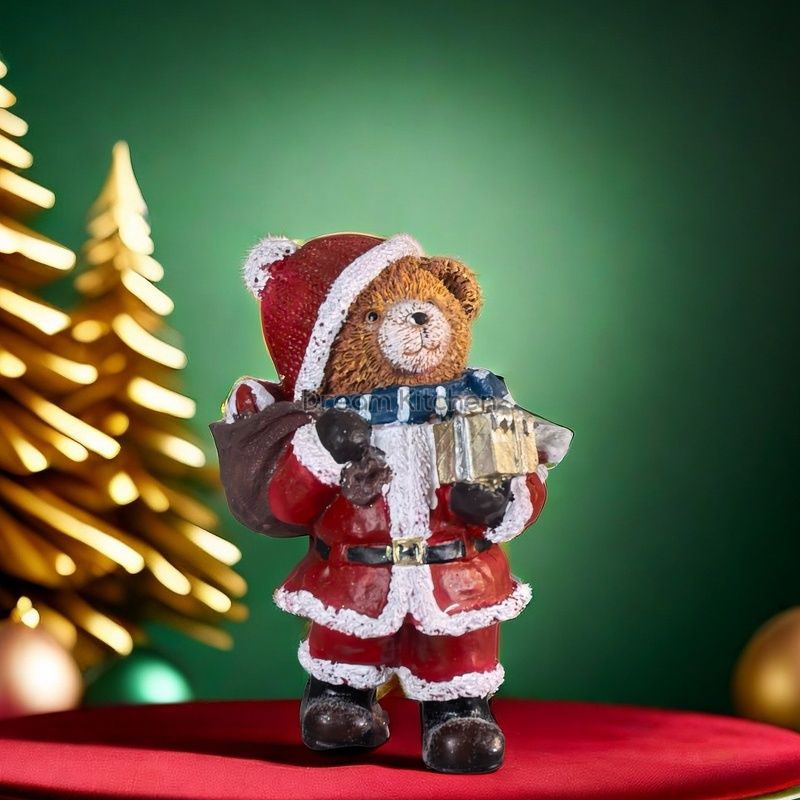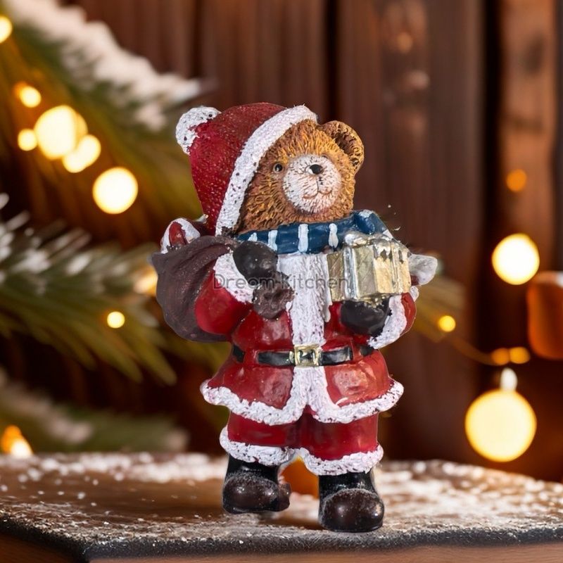 Очарователно мече с подарък – добавя топлина и празничен дух към декорацията.