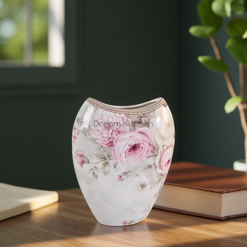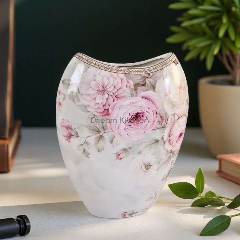Декоративна ваза „Цветен романс“ с изящен флорален дизайн. Подходяща за свежи или сухи цветя.