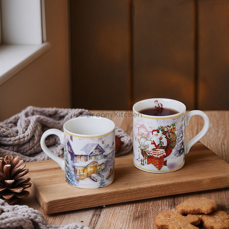 Комплект две коледни чаши от серията "Дядо Коледа" с ефектна коледна декорация. Предлагат се в цветна кутия.