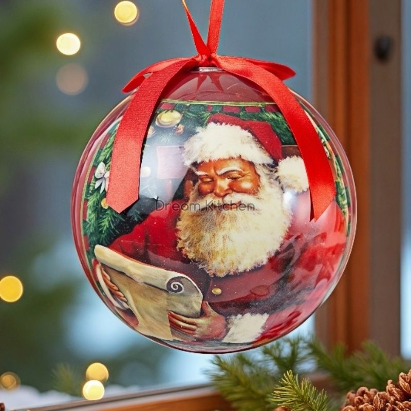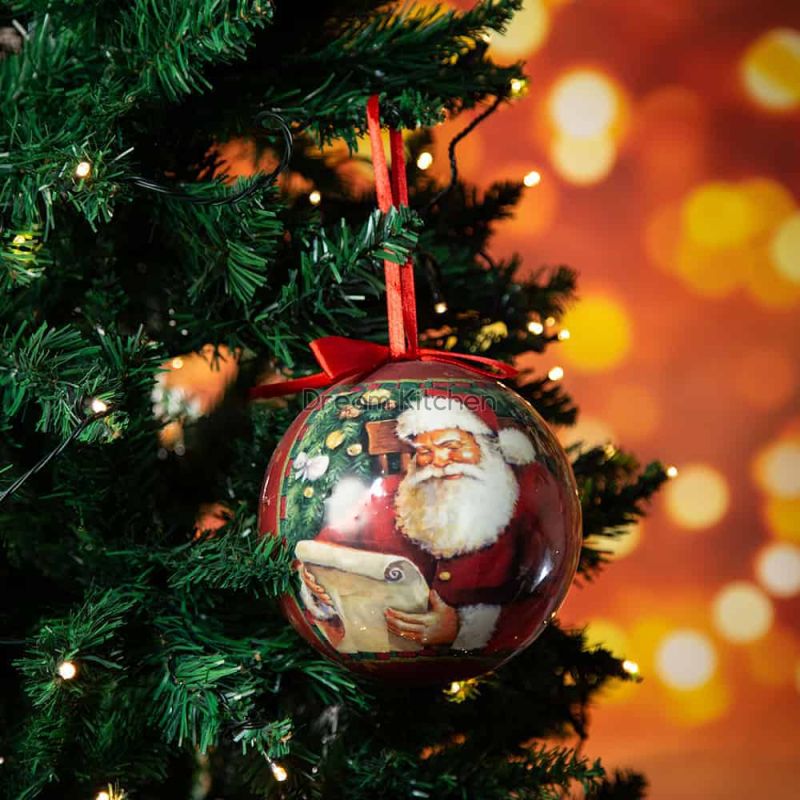 Топка за елха "Дядо Коледа" с оригинален дизайн и червена сатенена панделка.