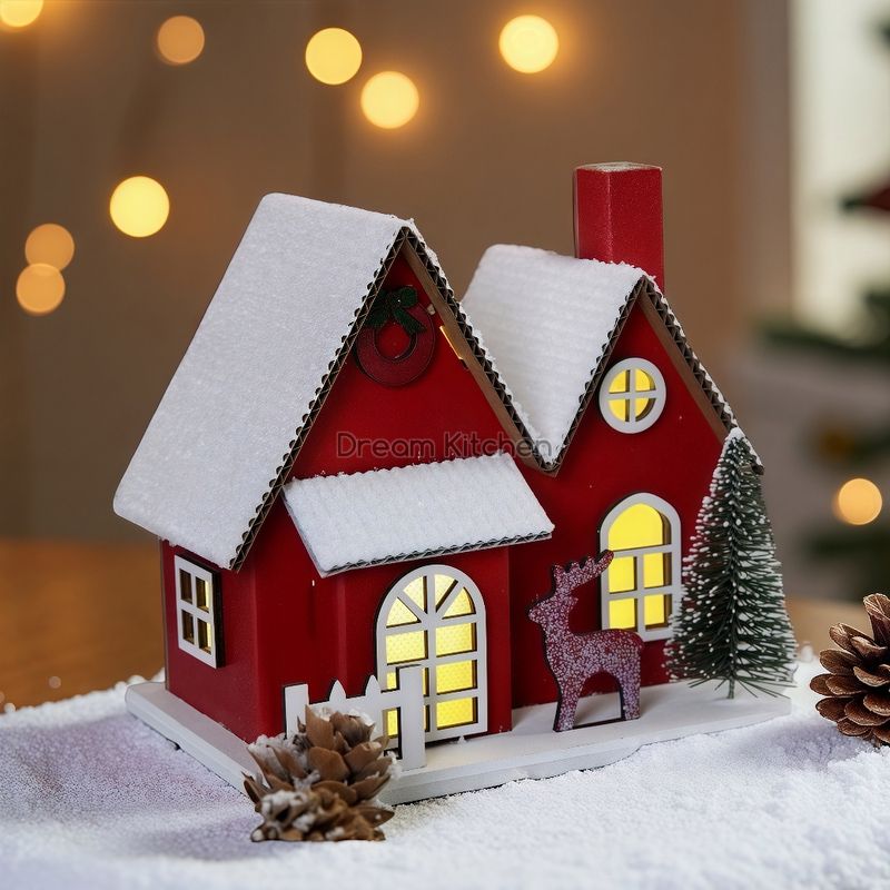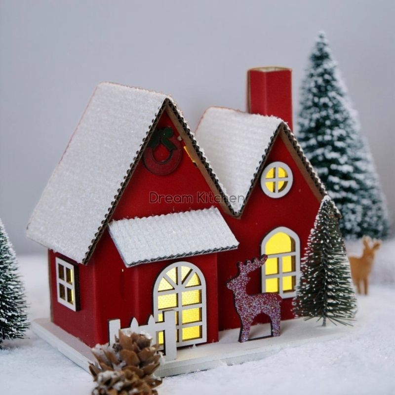 Коледна хартиена къща с LED светлина – уютна и ефектна украса за празничната атмосфера. Захранва се с ... батерии.
