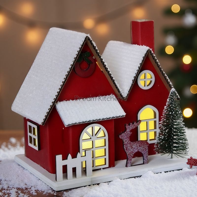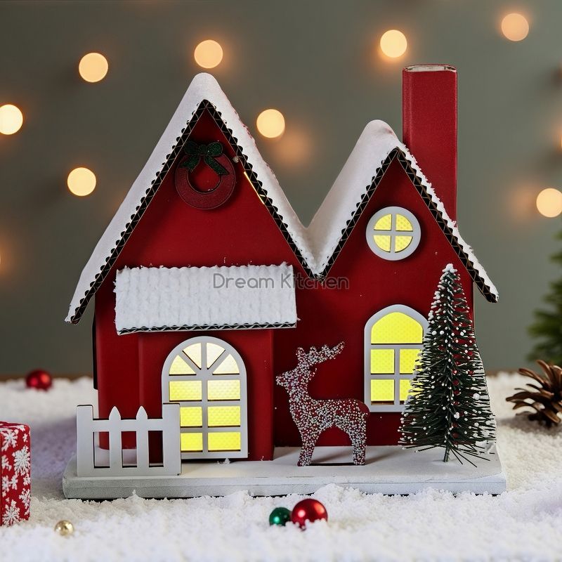 Коледна декорация от хартия - Червена къщичка