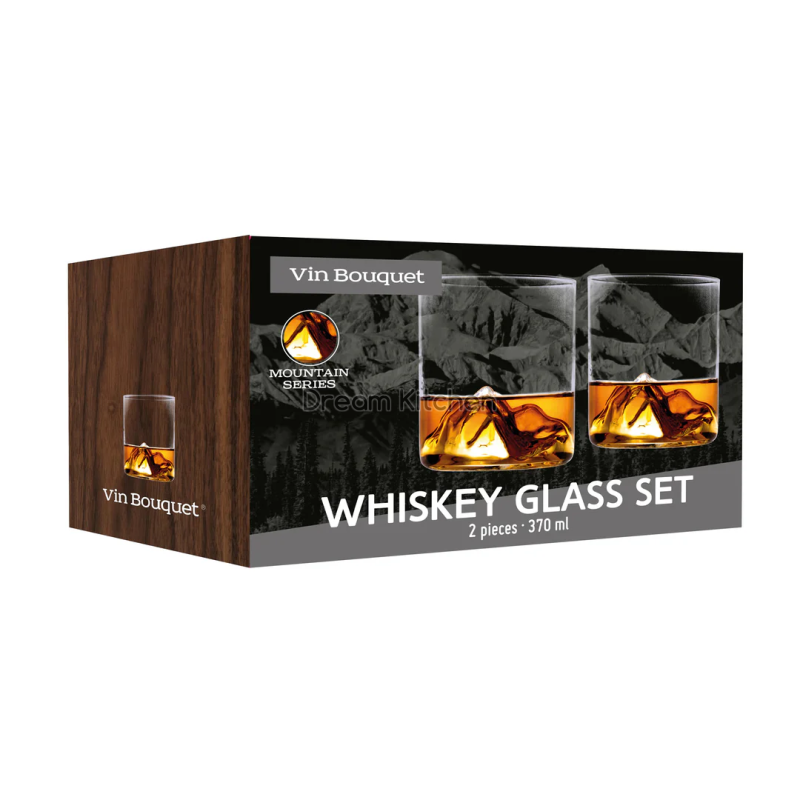Комплектът чаши за уиски Vin Bouquet превръща всяка глътка в уникално преживяване. Релефното дъно с форма на планина създава поразителен визуален ефект при сервиране на уиски или други спиртни напитки, което ги прави ексклузивни и елегантни.