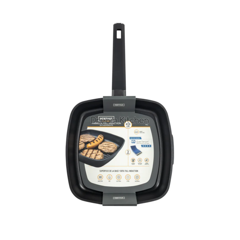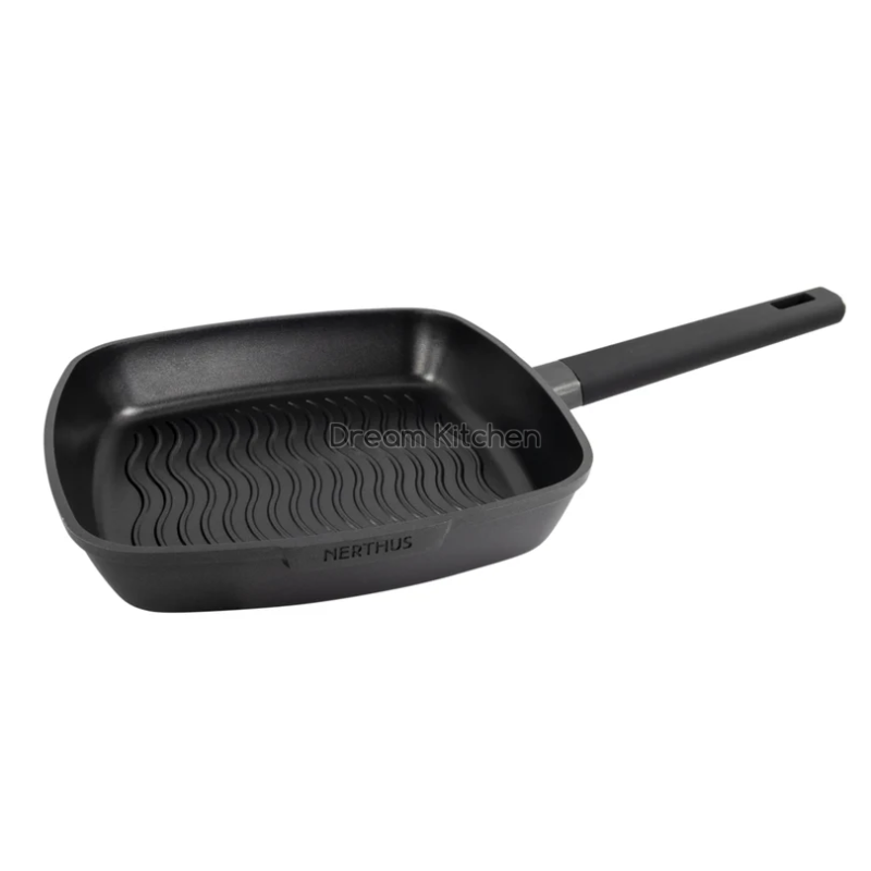 Тиганът от лят алуминий с незалепващо покритие Quantanium от Nerthus е висококачествен кухненски съд, създаден за ежедневна употреба с отлични резултати при готвене. Изработен от здрав и лек лят алуминий, той осигурява равномерно разпределение на топлината и бързо нагряване, което намалява риска от загаряне и подобрява вкуса на храната.