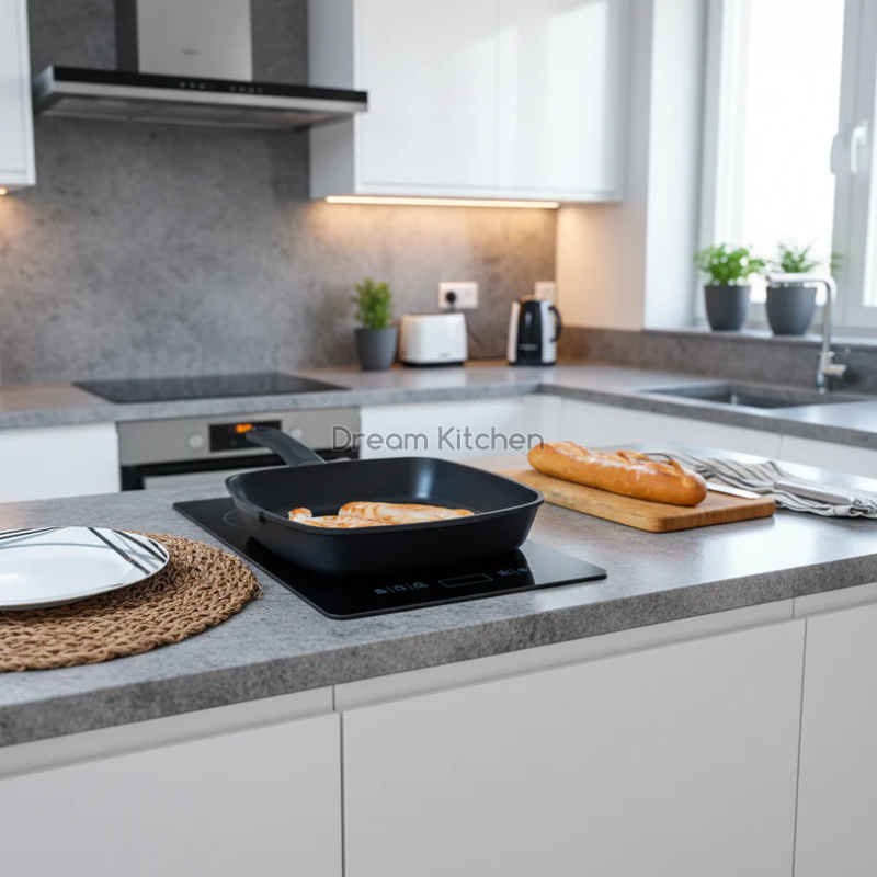 Благодарение на изцяло индукционната основа, тиганът е съвместим с всички видове котлони: индукционни, газови, електрически, керамични и халогенни. Ергономичната дръжка осигурява удобен захват и комфорт при работа, без да се нагрява прекомерно.
